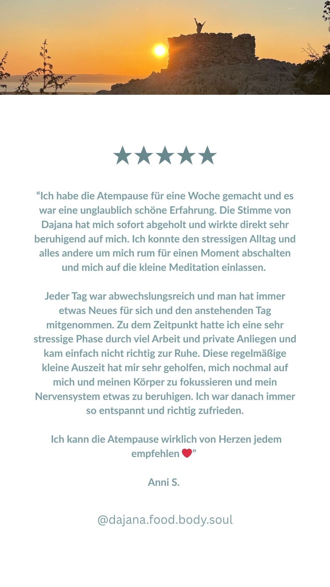 - tägliche Einladung zum bewussten Atmen und Ankommen